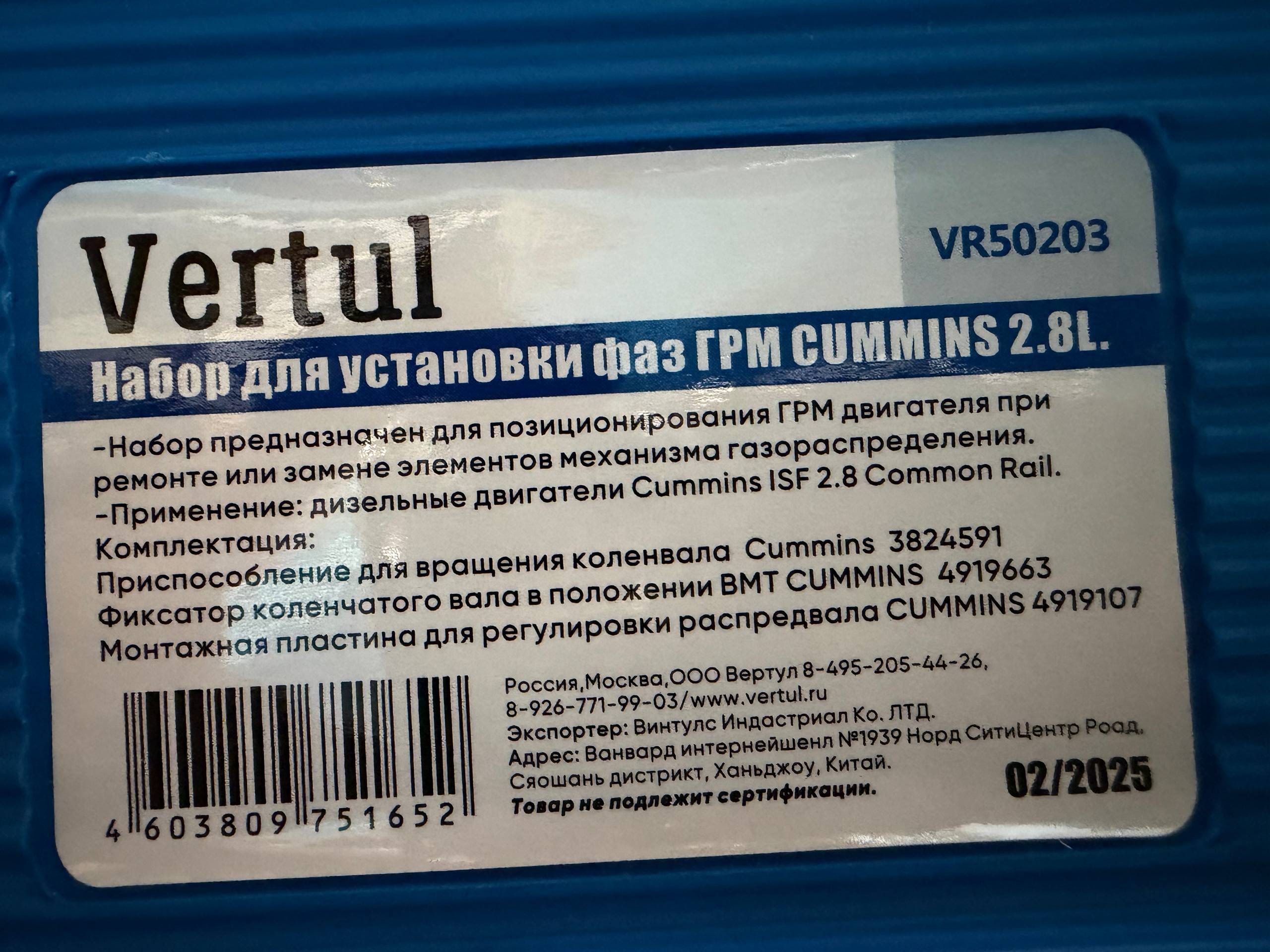 👩🏻🔧 Набор для установки фаз ГРМ CUMMINS 2.8L Vertul VR50203 — преимущества использования